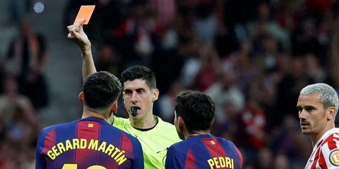 事件的焦点集中在下半场刚开始的第46分钟。当时,巴塞罗那年轻后卫杰拉德·马丁在中场的一次凶狠铲抢中踢到了马竞球员蒂亚戈·阿尔马达的腿部,当值主裁判第一时间直接向他出示了红牌。