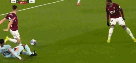 第34分钟,卡约德绊倒特拉奥雷送点,鲍恩主罚命中,西汉姆联2-1