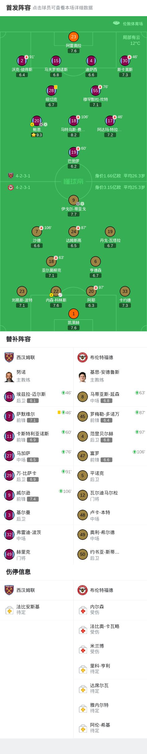 北京时间3月10日英格兰足总杯 1/8决赛,西汉姆联对阵布伦特福德。西汉姆联鲍恩梅开二度。布伦特福德伊戈尔-蒂亚戈梅开二度。最终比分西汉姆联 7-5 布伦特福德。